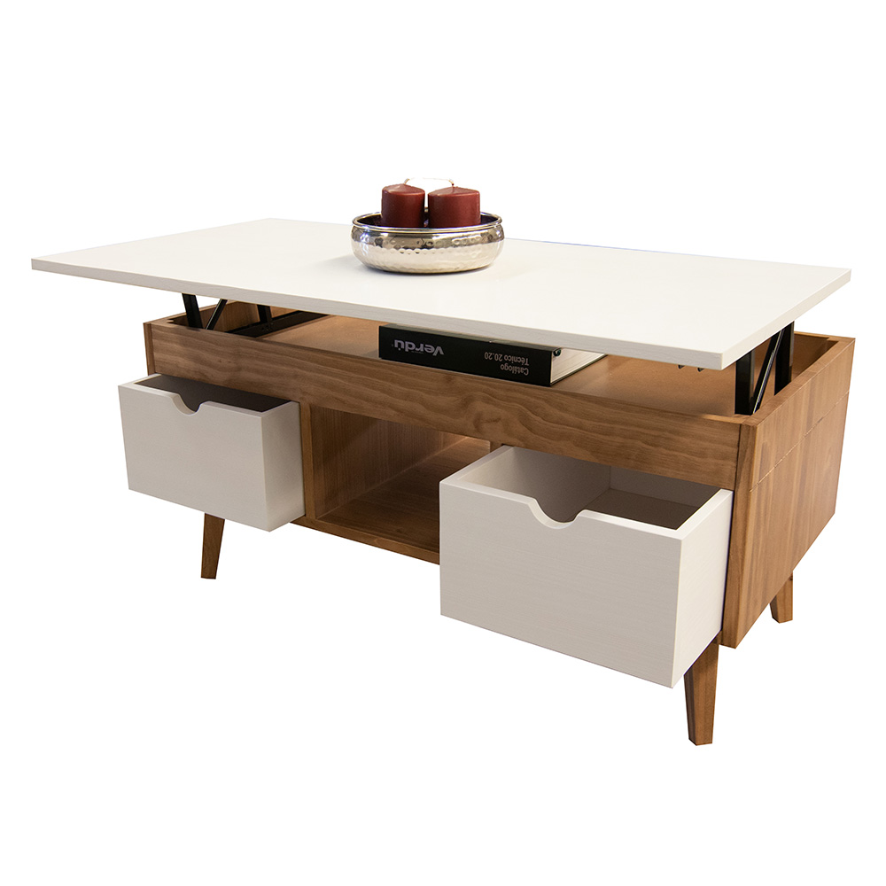 MESA DE CENTRO MODELO KARLA 7 BLANCO Y MADERA DOS CAJONES
