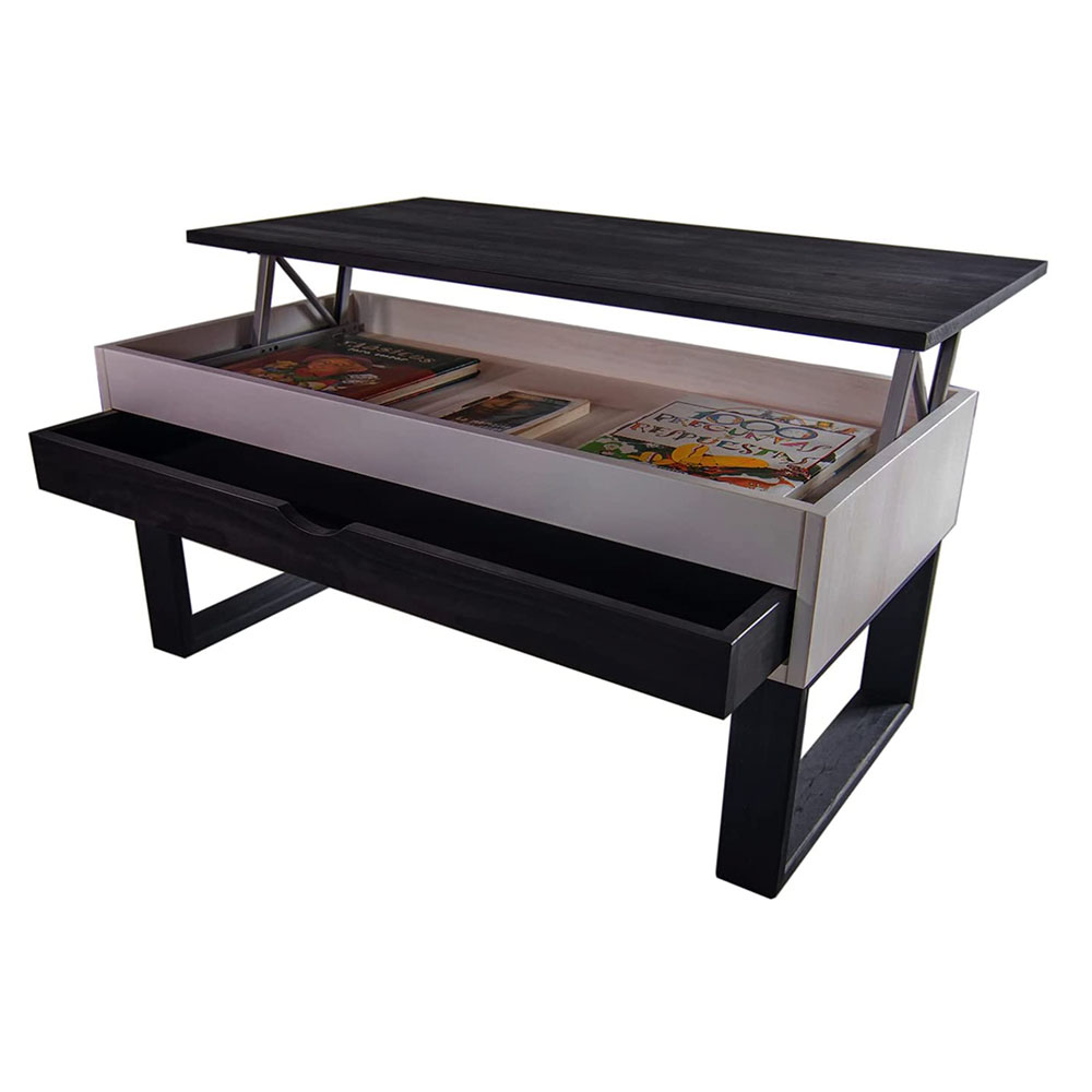 - MATERIALES: La mesa elevable de centro está fabricada en madera maciza de pino natural.